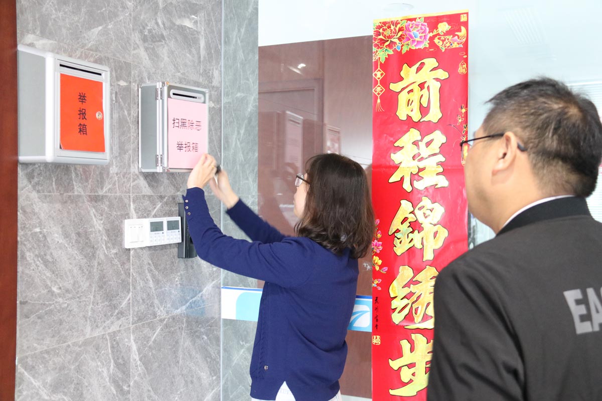 4月18日上午,集團(tuán)公司掃黑辦在集團(tuán)公司及各子公司開展宣傳工作,并在集團(tuán)公司及各子公司辦公樓張貼掃黑除惡舉報(bào)信箱、宣傳橫幅。