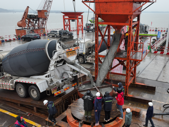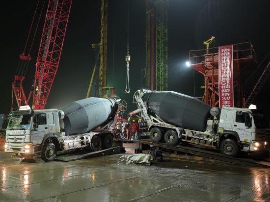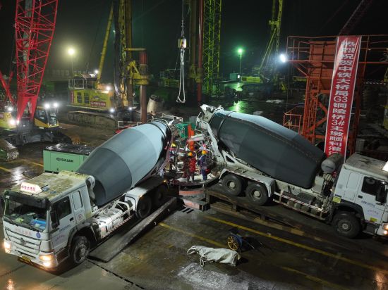 “此次灌注的是3號(hào)主墩19號(hào)樁。3號(hào)主墩共有68根鉆孔樁,每根樁直徑3.0米,樁長95米,成孔深度達(dá)122.5米,入巖深度約71.4米,鉆進(jìn)施工采用徐工XR580HD、XR600E和XR700型旋挖鉆機(jī)逐級(jí)擴(kuò)孔鉆進(jìn)成孔。”中鐵大橋局G3銅陵長江公鐵大橋項(xiàng)目一分部總工程師宋海濤介紹,G3銅陵長江公鐵大橋是世界首座雙層斜拉-懸索協(xié)作體系大橋,3號(hào)墩和4號(hào)墩是大橋的兩個(gè)主墩,承載988米的主跨一跨過江。