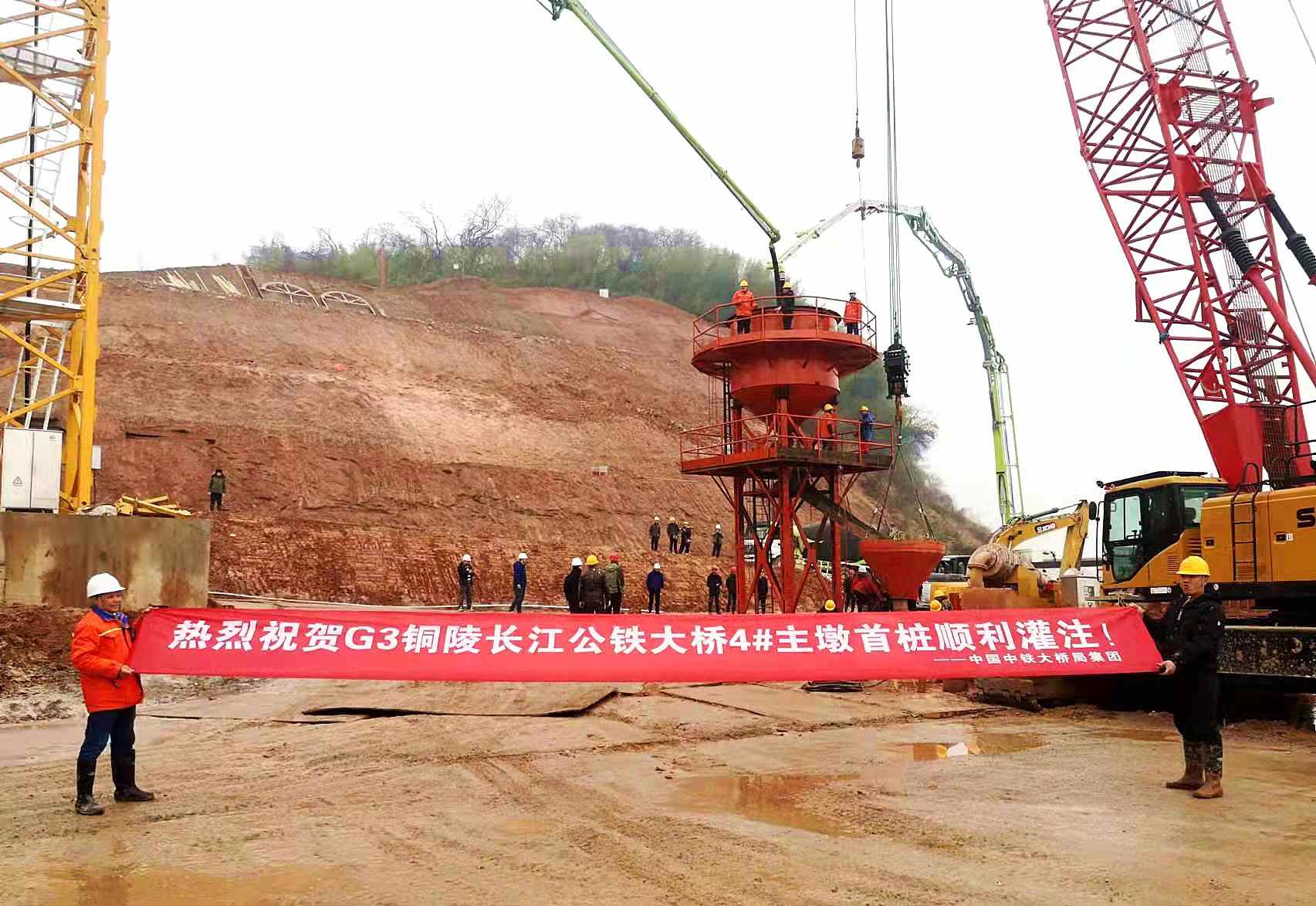 2月14日晚上8時40分,經(jīng)過10小時的連續(xù)奮戰(zhàn),由中鐵大橋局承建的G3銅陵長江公鐵大橋4號主墩首根鉆孔樁成功灌注,標志著大橋南主塔墩樁基工程進入了全面施工階段。