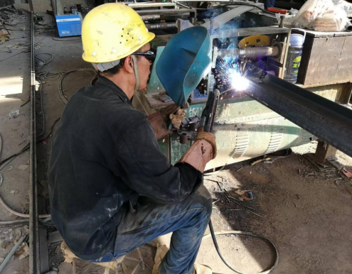在鋼筋加工場(chǎng)內(nèi),鋼筋工人徐輝富正拿著電焊機(jī)在焊接工字鋼。在被太陽(yáng)炙烤后滾燙的工字鋼和切割機(jī)飛濺的火星面前,厚厚的防護(hù)手套也顯得無(wú)濟(jì)于事,只見(jiàn)汗水不停地從他的額頭、兩頰滾落,雖然汗如雨下,他卻絲毫沒(méi)有停下手中的工作,而是認(rèn)真地把握好每個(gè)細(xì)節(jié),確保焊接質(zhì)量。