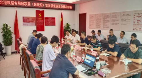 7月27日上午,銅陵市鐵路辦組織召開(kāi)江北港鐵路專用線(銅陵段)項(xiàng)目質(zhì)量安全監(jiān)管對(duì)接會(huì),銅陵市發(fā)改委副主任、鐵路辦主任謝永明主持會(huì)議。會(huì)上,江北港鐵路專用線公司董事長(zhǎng)、總經(jīng)理張葉來(lái)代表建設(shè)單位詳細(xì)介紹了項(xiàng)目基本情況、目前施工進(jìn)展情況、質(zhì)量安全管理工作開(kāi)展情況及下步工作安排,質(zhì)量安全監(jiān)督管理機(jī)構(gòu)(上海建科)就監(jiān)督工作安排、監(jiān)督要點(diǎn)進(jìn)行了交底,鐵路辦提出相關(guān)工作要求。項(xiàng)目建設(shè)、施工、設(shè)計(jì)、監(jiān)理、第三方檢測(cè)單位主要負(fù)責(zé)人及相關(guān)人員參加會(huì)議。本次會(huì)議的召開(kāi),標(biāo)志著銅陵市政府質(zhì)量安全監(jiān)督組正式對(duì)江北港鐵路專用線項(xiàng)目(銅陵段)開(kāi)展監(jiān)督工作。
