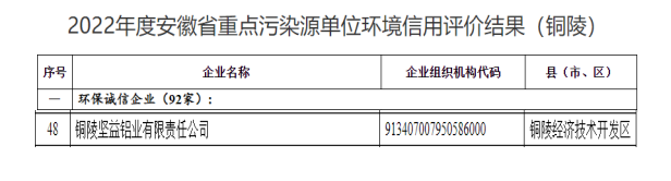 10月9日,市生態(tài)環(huán)境局對2022年度“安徽省重點(diǎn)污染源單位環(huán)境信用等級評價結(jié)果”予以公布,市交投集團(tuán)司屬堅益鋁業(yè)公司經(jīng)過層層評選,成功榮獲“環(huán)保誠信企業(yè)”稱號。據(jù)悉獲評該項(xiàng)榮譽(yù)我市共計92家企業(yè)。
