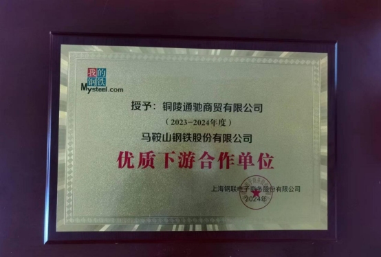 3月28日,2024年度鋼鐵中國第四屆安徽黑色金屬產(chǎn)業(yè)鏈供需交流高峰論壇會議在蕪湖召開,銅陵通馳有限公司分別獲得安徽長江鋼鐵有限公司“優(yōu)質(zhì)下游合作單位”榮譽(yù)稱號、馬鞍山鋼鐵股份有限公司“優(yōu)質(zhì)下游合作單位”榮譽(yù)稱號。