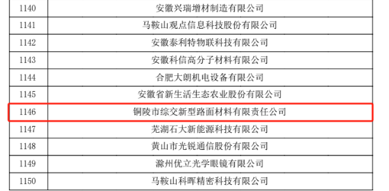 根據(jù)《高新技術(shù)企業(yè)認定管理辦法》和《高新技術(shù)企業(yè)認定管理工作指引》有關(guān)規(guī)定,銅陵市綜交新型路面材料有限責任公司順利通過安徽省2024年第二批“高新技術(shù)企業(yè)”認定。