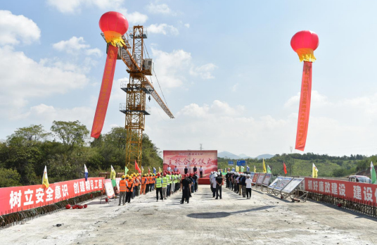 9月16日上午,隨著最后一方混凝土的澆筑,G236青通河大橋完成全橋合龍,實(shí)現(xiàn)全橋貫通,為年底全面通車、工程完工奠定了堅(jiān)實(shí)的基礎(chǔ)。池州市交通局副局長(zhǎng)彭文季,市公路管理服務(wù)中心主任裴玨,集團(tuán)公司黨委委員、副總經(jīng)理湯世才、總工程師張葉來(lái),省路港工程有限責(zé)任公司黨委委員、紀(jì)委書(shū)記張?chǎng)蔚瘸鱿淆垉x式并共同啟動(dòng)大橋合龍施工。