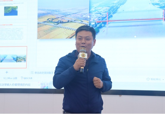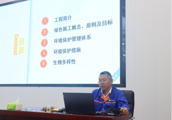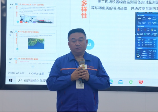 參觀結(jié)束后,小記者們來到展演廳,一起觀看G3橋建設(shè)宣傳片、聆聽G3橋安全總監(jiān)周啟輝講解生物多樣性相關(guān)知識(shí)以及G3橋建設(shè)期間對(duì)生物多樣性保護(hù)的措施。一張張?zhí)匦Ю瓭M的動(dòng)態(tài)效果圖,一幀幀凝聚著建筑工人汗水的畫面,給小記者們留下了深刻的印象。小記者代表們?yōu)榻ㄔO(shè)者們戴上鮮紅的紅領(lǐng)巾,表達(dá)對(duì)他們的崇敬之情。