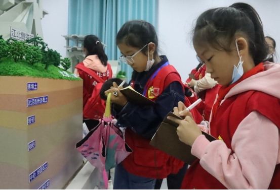 上午9時(shí)許,一輛承載著小記者們歡聲笑語的大巴車緩緩駛?cè)隚3銅陵長(zhǎng)江公鐵大橋建設(shè)基地,小記者們有序下車后,按照規(guī)范佩戴好安全帽,便在工作人員的帶領(lǐng)下參觀G3公鐵橋南岸建設(shè)現(xiàn)場(chǎng),面對(duì)著聳立江面的G3銅陵長(zhǎng)江公鐵大橋4號(hào)墩,小記者們驚嘆于現(xiàn)代科技的鬼斧神工,并化作自己的語言記錄在筆記本上。