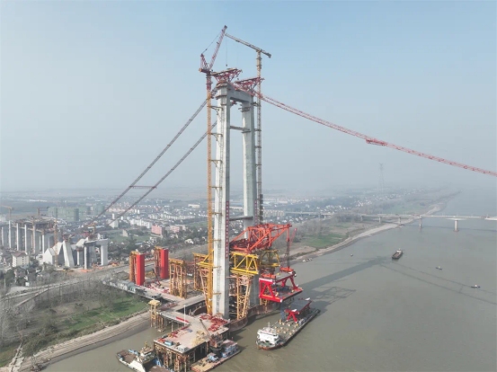 11月23日,G3銅陵長(zhǎng)江公鐵大橋北主塔成功架設(shè)第一節(jié)鋼梁,拉開了大橋江北側(cè)鋼梁架設(shè)的序幕。