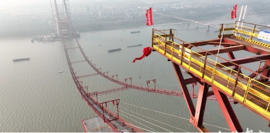 11月30日,由市交投集團投資建設(shè)、中鐵大橋局承建的G3銅陵長江公鐵大橋最后一個貓道門架安裝完畢,為大橋貓道拼上最后一塊“拼圖”。在陽光的照耀下,貓道懸于空中,將兩岸錨碇、主塔相連,如同色彩鮮艷的“空中走廊”。不久后,大橋首根纜索就能順著牽引繩飛渡長江。
