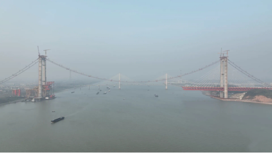 自10月20日先導索過江,到11月30日最后一個門架安裝完成,大橋貓道在45天內(nèi)安全完工,為大橋纜索系統(tǒng)的施工創(chuàng)造了良好條件。未來,一股股纜索將在其上完成“穿針引線”,為大橋主梁過江提供關(guān)鍵支撐。