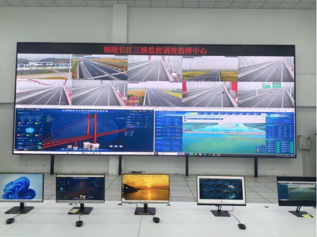 楊如松一行先后前往大通服務(wù)區(qū)、大橋公路路面、普濟(jì)圩收費(fèi)站和大橋監(jiān)控調(diào)度指揮中心,逐項(xiàng)核查籌備細(xì)節(jié)。在大通服務(wù)區(qū),重點(diǎn)查看了停車區(qū)域布局、便民服務(wù)設(shè)施、物資儲(chǔ)備和消防設(shè)施配備情況;隨后查看了大橋全線路面質(zhì)量及交通安全設(shè)施設(shè)置情況;最后在大橋監(jiān)控調(diào)度指揮中心,觀看了數(shù)字孿生系統(tǒng)、橋梁健康監(jiān)測(cè)系統(tǒng)、景觀照明系統(tǒng)、除濕系統(tǒng)及視頻監(jiān)控等系統(tǒng)功能演示,并聽取了智慧交通管理平臺(tái)建設(shè)及配套設(shè)施情況匯報(bào)。