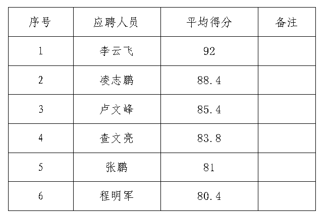 根據(jù)《銅陵市綜合交通投資集團(tuán)有限公司公開(kāi)招聘人員公告》,我公司已于2022年5月19日開(kāi)展安徽通巨倉(cāng)儲(chǔ)物流有限公司崗位面試工作,現(xiàn)將報(bào)名參與人員面試成績(jī)公示如下: