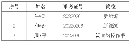根據(jù)2022年7月25日發(fā)布的《銅陵市綜合交通投資集團(tuán)有限公司公開招聘人員公告》規(guī)定,現(xiàn)將銅陵交投集團(tuán)2022年公開招聘的新能源及瀝青站操作手崗位擬錄用人員予以公示,名單如下: