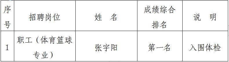 根據(jù)《銅陵市綜合交通投資集團有限公司公開招聘人員公告》和面試綜合成績排名,結合公司崗位實際需求和面試評審專家綜合意見,我公司經研究決定,本次招錄一名職工(體育籃球專業(yè))?,F(xiàn)將入圍體檢人員名單公示如下: