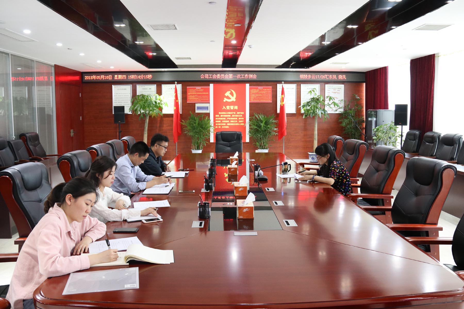 2018年5月10日下午,副總經(jīng)理、工會主席范美霞在公司機(jī)關(guān)會議室主持召開工會委員會第一次工作例會,委員會全體成員參加會議。會上就工會委員會會議制度、公司“黨員日”主題教育暨職工春游活動方案等事項進(jìn)行討論研究和明確。此次會議的召開,進(jìn)一步加強(qiáng)了公司工會民主管理、規(guī)范了制度建設(shè),在多為公司職工辦實事、做好事、解難事方面真正發(fā)揮職工與公司同心同德的橋梁作用。