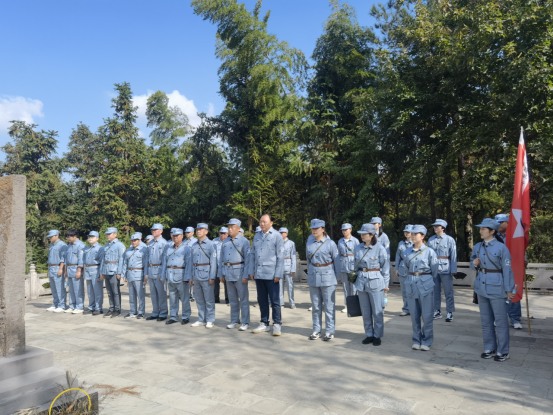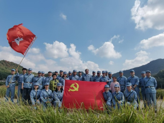 活動(dòng)中,大家首先觀看了《渡江偵察記》節(jié)選片段,重溫了那段革命戰(zhàn)爭(zhēng)場(chǎng)景,回顧了劉四姐為革命事業(yè)甘于奉獻(xiàn)的愛國(guó)精神。隨后,大家換上新四軍軍服,就地開啟新四軍紅色文化體驗(yàn)之旅,重溫紅色記憶。爾后大家齊唱一首革命歌曲《沒有共產(chǎn)黨就沒有新中國(guó)》;重走一段新四軍的小路,山路高低不平,少數(shù)黨員同志能夠克服困難,堅(jiān)持走了5公里;聽一段新四軍故事,講解員講述劉四姐傳奇而短暫的感人故事;吃一頓新四軍飯,憶苦思甜,吃著紅薯,感受當(dāng)年新四軍為新中國(guó)解放事業(yè)作出的巨大貢獻(xiàn)。