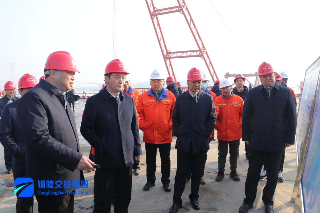 孔濤一行深入G3銅陵長(zhǎng)江公鐵大橋項(xiàng)目現(xiàn)場(chǎng),聽取施工單位項(xiàng)目安全生產(chǎn)和建設(shè)情況匯報(bào)。