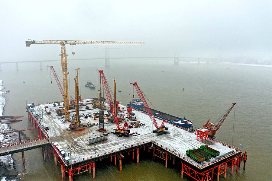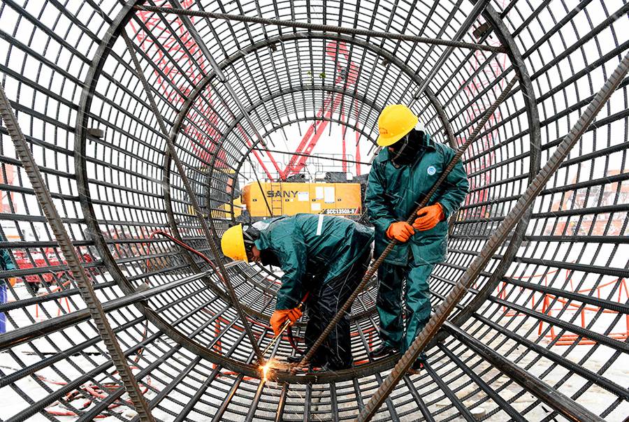 人民網(wǎng)合肥2月9日電(陳浩)虎年上班首日,安徽銅陵出現(xiàn)降雪天氣,但建設(shè)者的熱情沒有絲毫減弱。為確保G3銅陵長(zhǎng)江公鐵大橋建設(shè)進(jìn)度,施工人員頂風(fēng)冒雪為大橋3號(hào)主墩安裝鉆孔樁鋼筋籠。