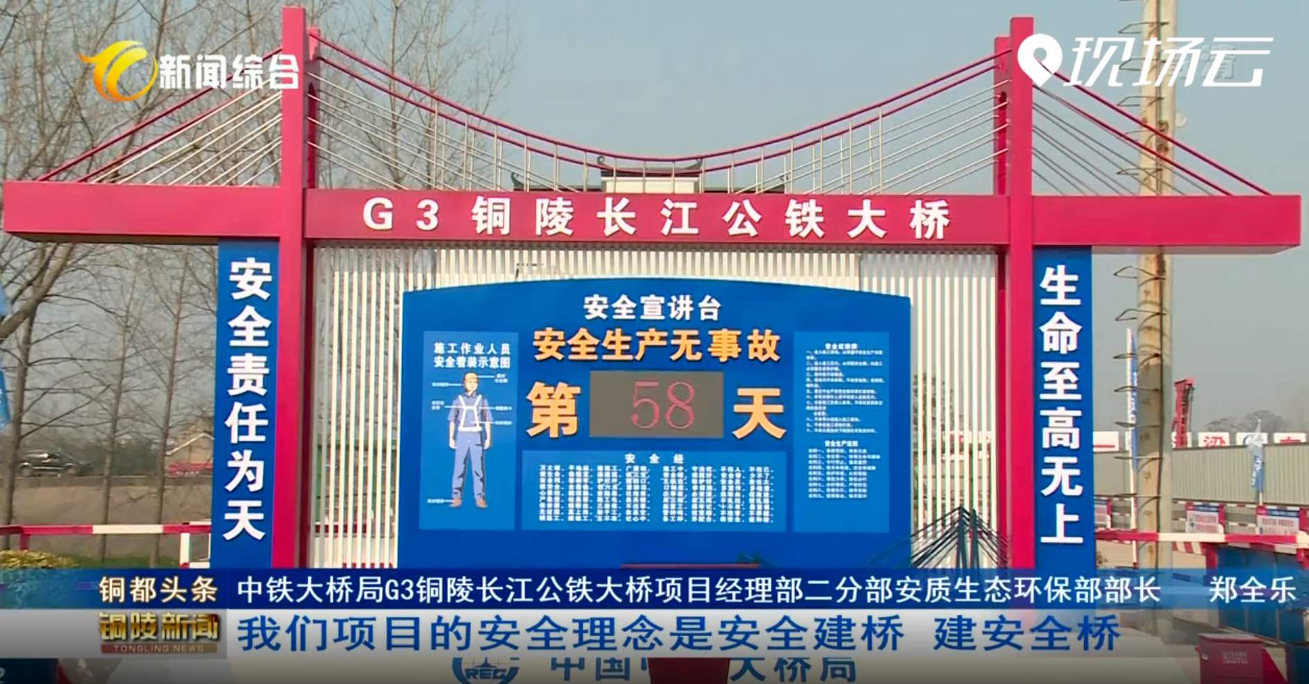 中鐵大橋局G3銅陵長(zhǎng)江公鐵大橋項(xiàng)目經(jīng)理部二分部安質(zhì)生態(tài)環(huán)保部部長(zhǎng)鄭全樂:我們項(xiàng)目的安全理念是安全建橋、建安全橋,確?,F(xiàn)場(chǎng)工作當(dāng)中安全隱患能及時(shí)發(fā)現(xiàn),及時(shí)解決,確保工人在作業(yè)過程中能有一個(gè)良好的、安全的工作環(huán)境。
