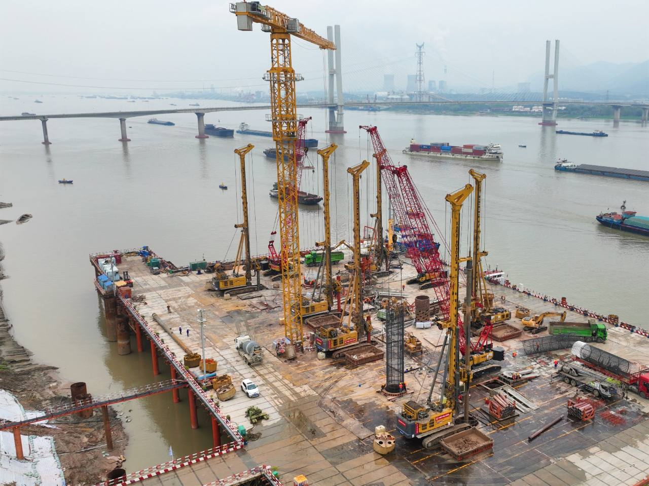 “我們堅(jiān)決貫徹落實(shí)黨中央和地方政府的有關(guān)部署,一手抓防疫一手抓生產(chǎn),在做好各項(xiàng)防疫措施的前提下,有序、穩(wěn)步推進(jìn)現(xiàn)場(chǎng)的施工生產(chǎn)?!敝需F大橋局G3銅陵長(zhǎng)江公鐵大橋項(xiàng)目部一分部總工程師宋海濤介紹,一分部采取了增加鉆機(jī)設(shè)備、優(yōu)化施工工藝、配置精兵強(qiáng)將、確保物資供應(yīng)等措施,三月份以來(lái)平均達(dá)到1天成樁1根的施工新紀(jì)錄,為后續(xù)圍堰及承臺(tái)施工提供了可靠的工期保障?!癎3銅陵長(zhǎng)江公鐵大橋是世界首座雙層斜拉-懸索協(xié)作體系大橋,3號(hào)墩和4號(hào)墩是大橋的兩個(gè)主墩,承載988米的主跨一跨過(guò)江。”中鐵大橋局G3銅陵長(zhǎng)江公鐵大橋項(xiàng)目部一分部技術(shù)員王康介紹,3號(hào)主墩共有68根鉆孔樁,每根樁直徑3.0米,樁長(zhǎng)95米,成孔深度達(dá)122.5米,入巖深度約71.4米,采取了旋挖鉆分級(jí)擴(kuò)鉆成孔工藝施工。