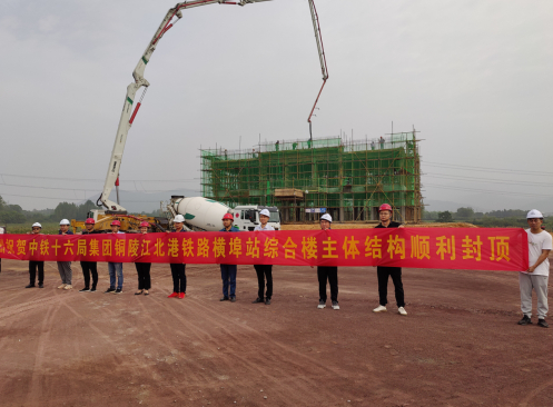 9月8日上午,隨著最后一方混凝土澆筑完成,在項(xiàng)目建設(shè)、監(jiān)理及施工單位管理人員的見(jiàn)證下,由中鐵十六局集團(tuán)負(fù)責(zé)施工的銅陵港江北港區(qū)鐵路專用線項(xiàng)目橫埠站綜合樓順利完成主體結(jié)構(gòu)封頂,成為全線首座整體封頂?shù)能囌局黧w建筑,標(biāo)志項(xiàng)目房建工程取得了階段性成果。