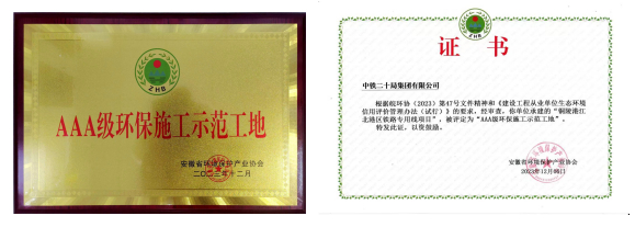 日前,從安徽省環(huán)境保護(hù)產(chǎn)業(yè)協(xié)會傳來佳訊,銅陵港江北港區(qū)鐵路專用線項目中鐵二十局施工管段喜獲安徽省2023年度“AAA級環(huán)保施工示范工地”榮譽稱號。